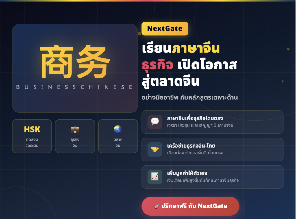 การเลือก thai study abroad consultant ที่เชี่ยวชาญคือก้าวแรกสำคัญสำหรับคนที่อยากไปเรียนต่างประเทศ โดยเฉพาะประเทศจีน เพราะ thai study abroad consultant จะช่วยดูแลตั้งแต่ขั้นตอนการเลือกคอร์ส สมัครเรียน ไปจนถึงขอวีซ่าและเตรียมตัวเดินทาง ตลอดจนดูแลที่จีน NextGate คือหนึ่งใน thai study abroad consultant ที่เน้นการดูแลแบบใกล้ชิด ดูแลนักเรียนแบบ Exclusive Care ทีมงานมีประสบการณ์ตรงด้านการเรียนภาษาจีนและชีวิตในจีน พร้อมให้คำปรึกษาตั้งแต่ก่อนบินจนเดินทางถึงจีน สำหรับใครที่กำลังมองหา thai study abroad consultant ที่ให้คำแนะนำอย่างจริงใจ เข้าใจนักเรียน และช่วยให้ทุกขั้นตอนง่ายขึ้น NextGate พร้อมเป็นเพื่อนร่วมทางในทุกก้าวของการเรียนต่อประเทศจีน